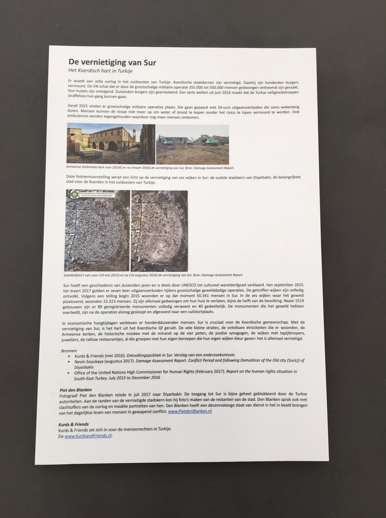 Exhibition ‘De vernietiging van Sur: Het Koerdisch hart in Turkije’ (The Destruction of Sur: The Kurdish heart in Turkey) by Piet den Blanken in The Hague City Council.