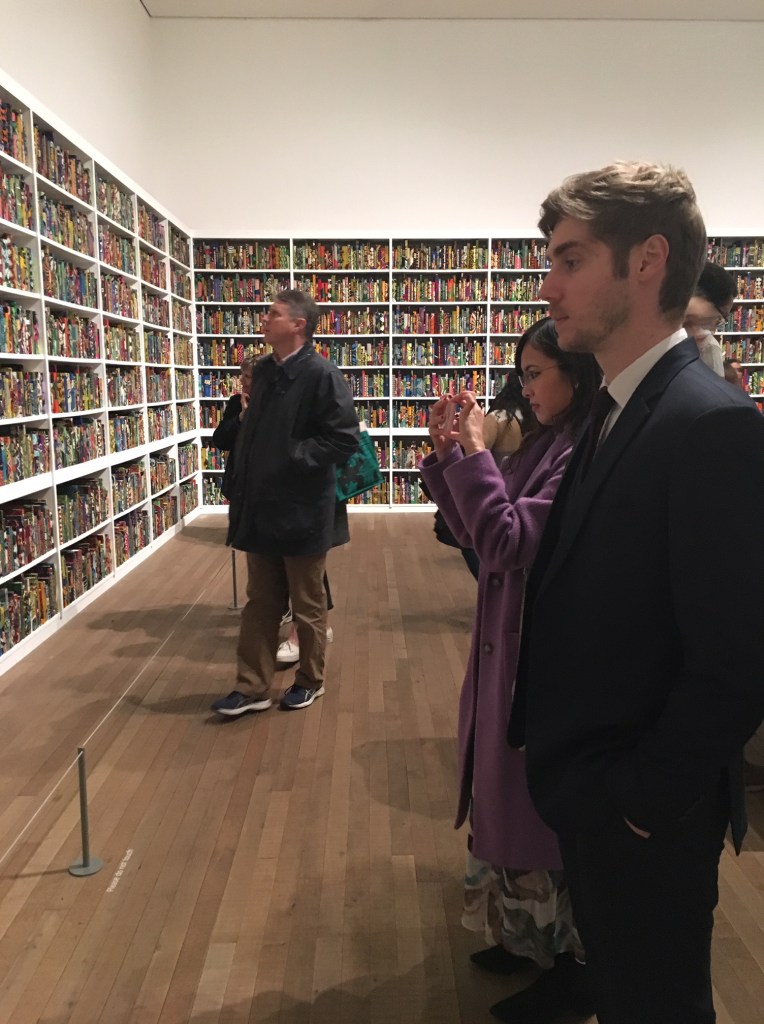 The British Library by Yinka Shonibare CBE, currently on display at Tate Modern London, highlights the impact of immigration on British culture and invites visitors to join in the discussion.