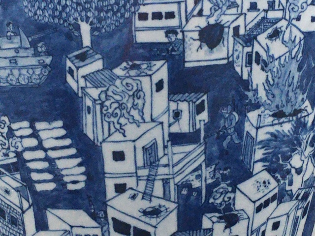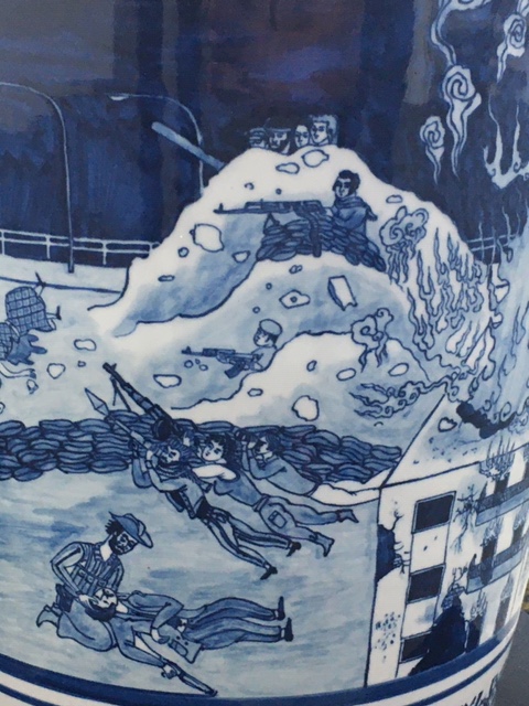 Raed Yassin, Yassin Dynasty, 2013. Hand-painted porcelain vases. Witte de With Centre for Contemporary Art, Rotterdam.