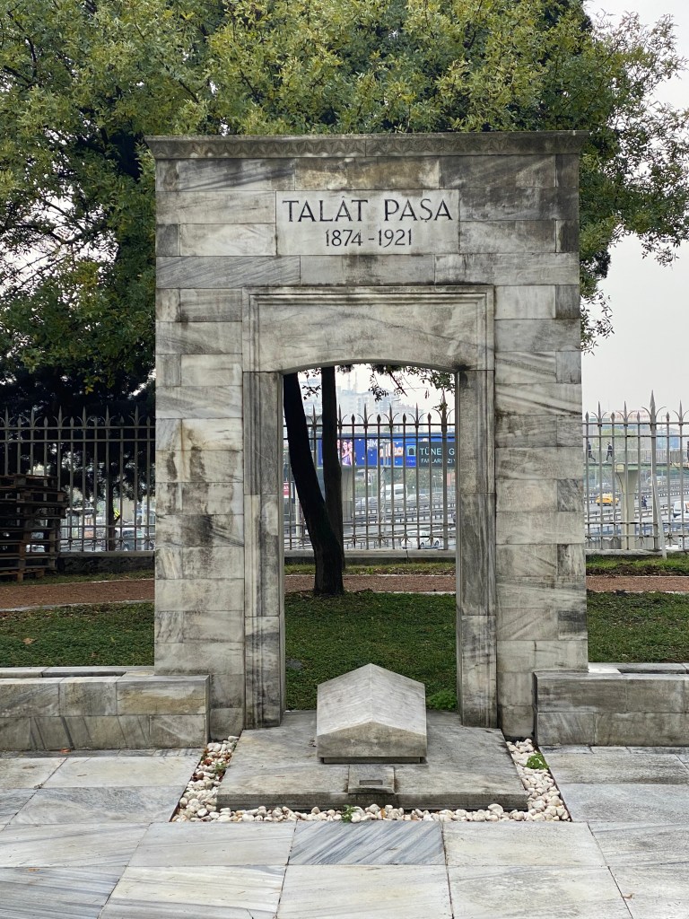 The gravesite of Grand Vizier Talat Pasha, who was convicted in absentia by a special martial court over (inter alia) the Armenian massacres and was assassinated in Berlin during operation nemesis (leading to the Thelerian trial). His body was returned by Nazi Germany.The tomb of War Minister Enver Pasha who was also convicted in absentia. Both men are heralded at the National Liberty Monument, which is next to the Justice Palace.