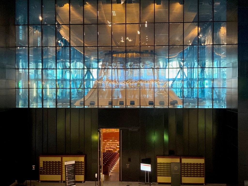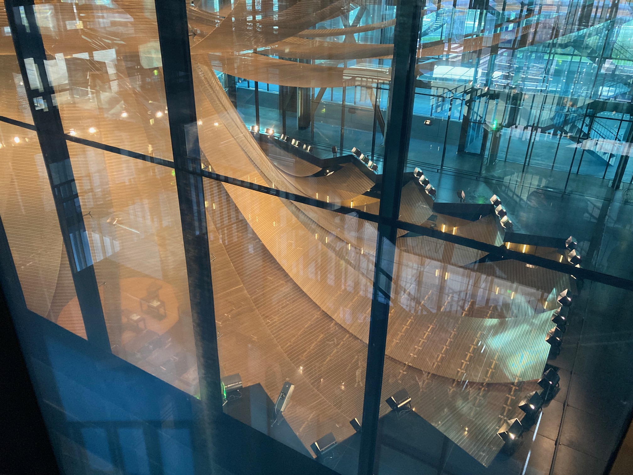 The gold stands out, but on tours of the Courts of Justice of the European Union guides elude how it is in fact black and gold that you see. An echo, affirmed by Dominque Perrault Architects, of the foundational event at the heart of Europe: the fusion of coal and steel. And indeed, when you look more closely you see that: