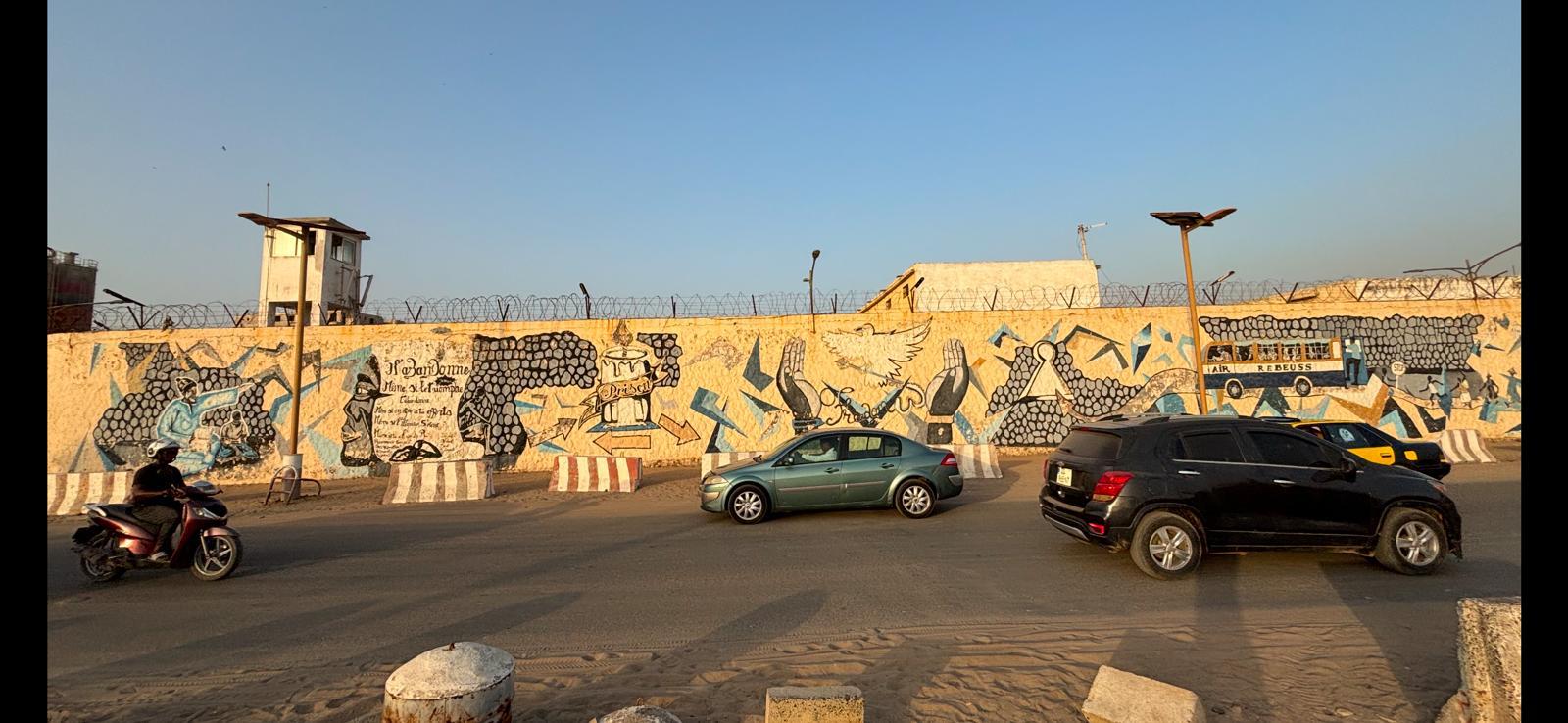 To their left, the Wolof proverb ‘Nit Nitay Garabam’ is marked on the long boat, which can be roughly translated as: ‘a person is another person’s medicine’. In the boat a man rows while the others show the way. Just how much are those running by on guard and, as you pass by, just how does this wall speak to you?